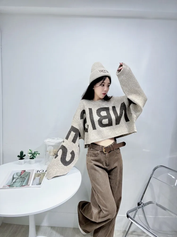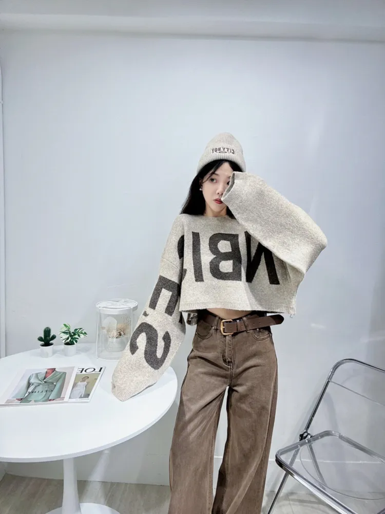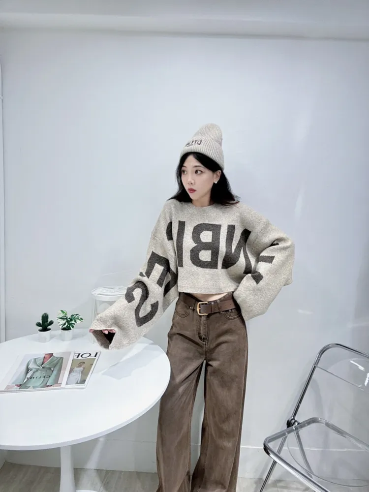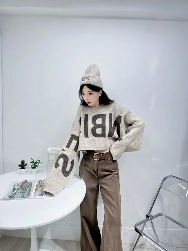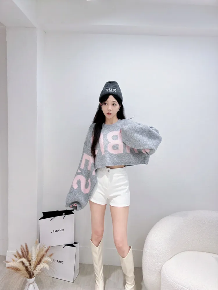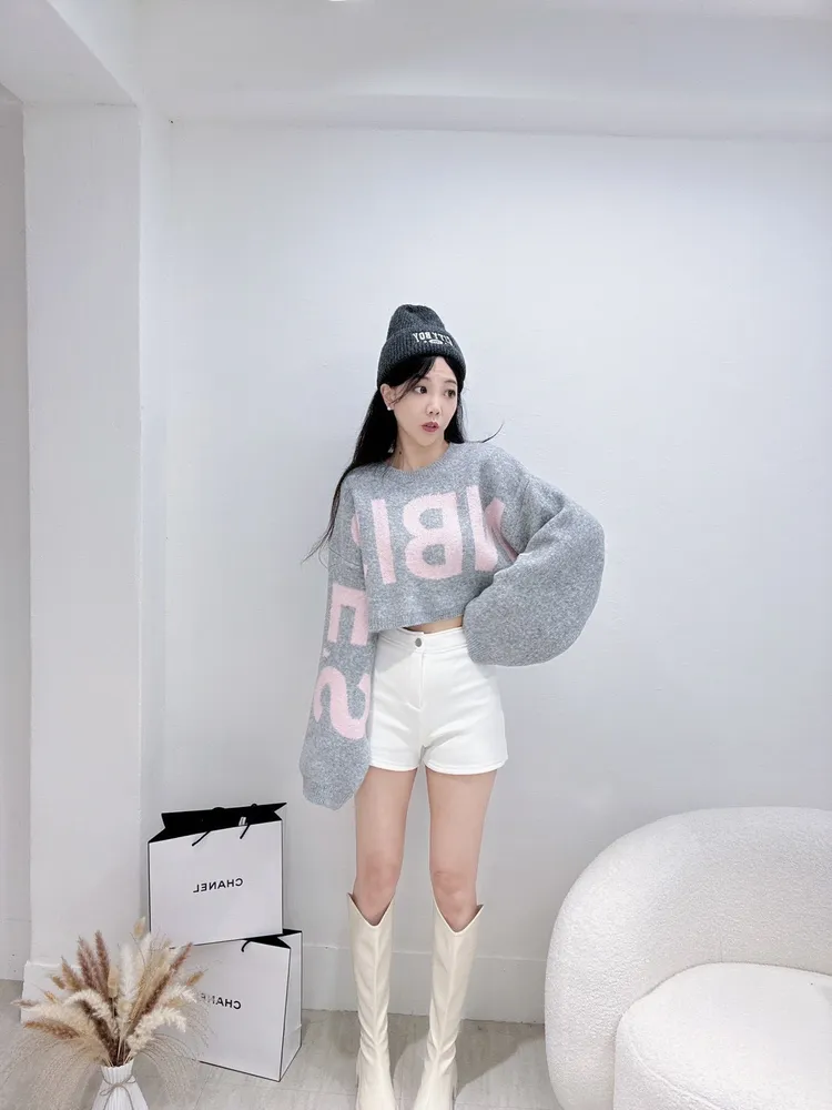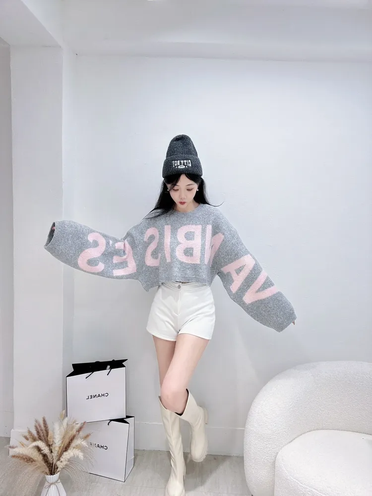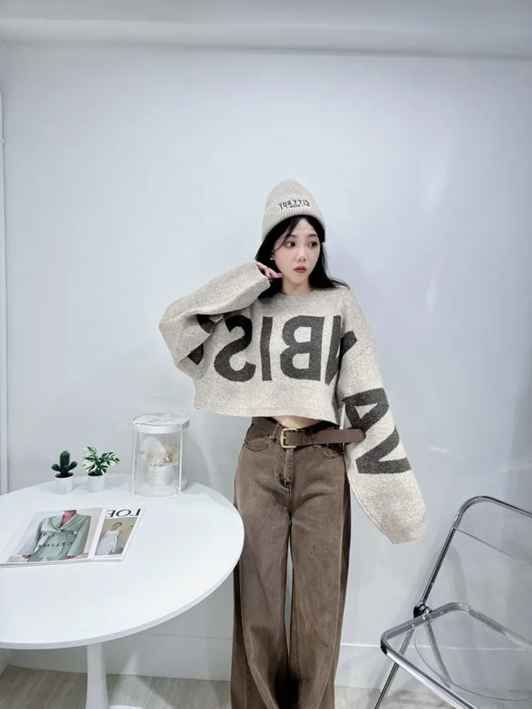 字母短版毛衣