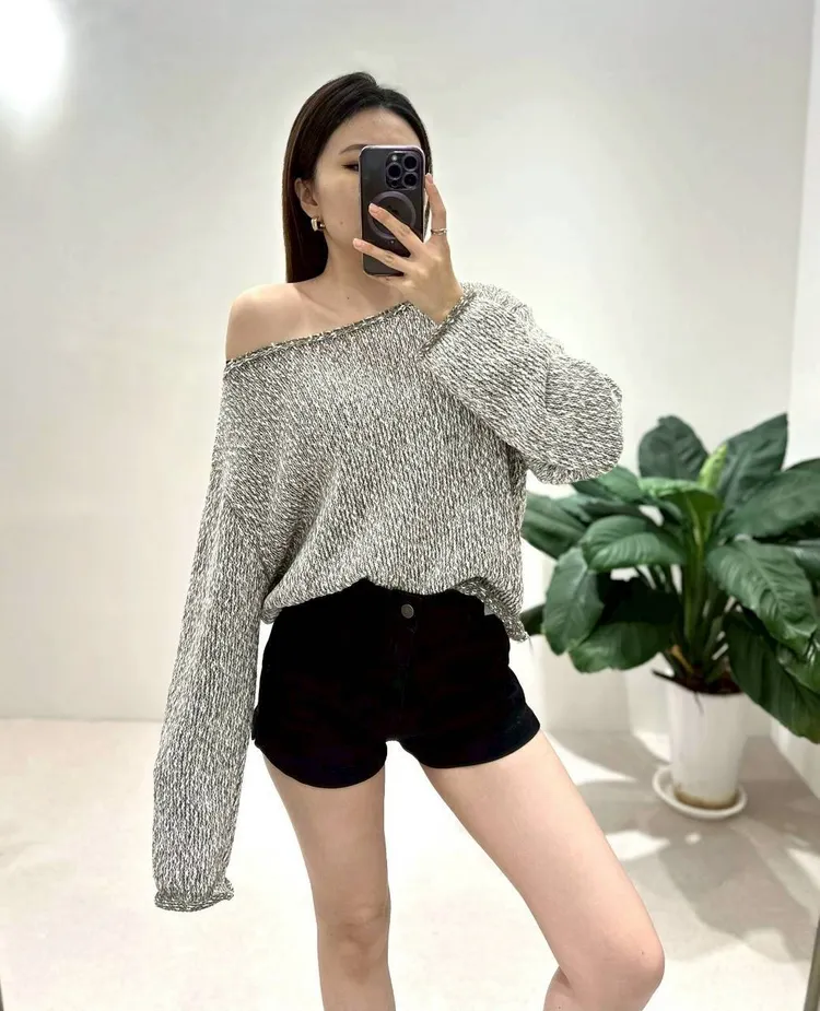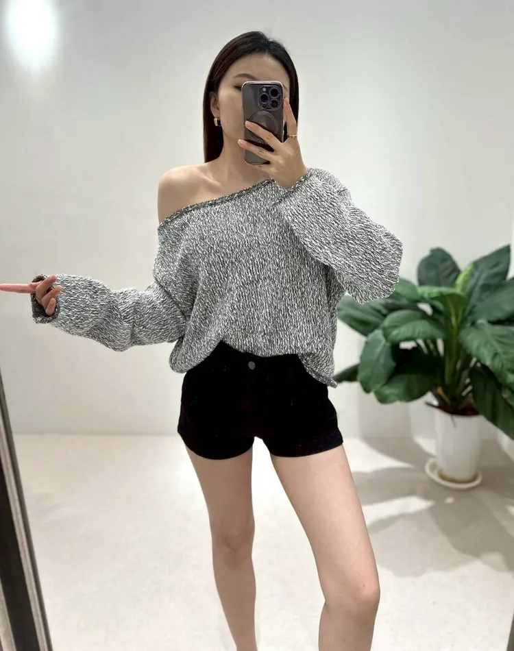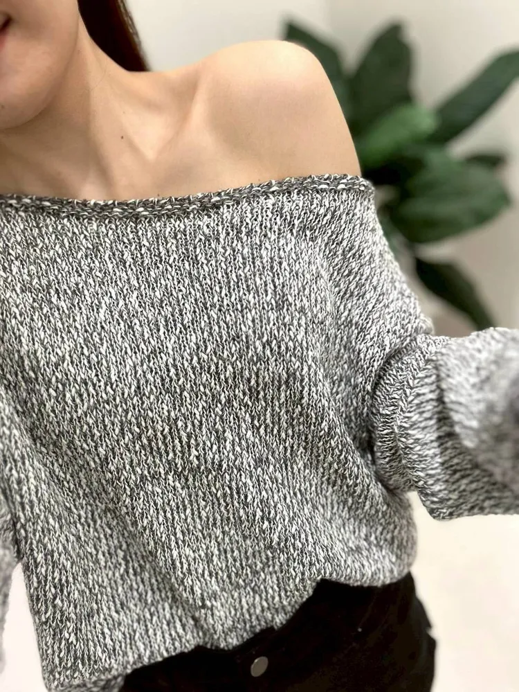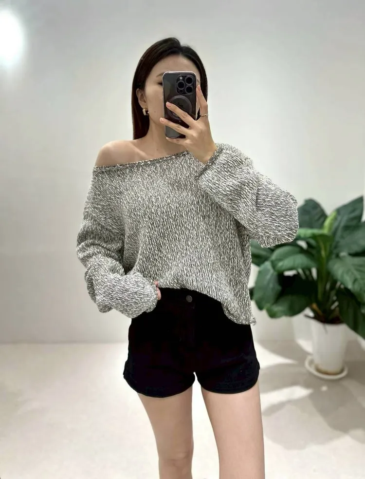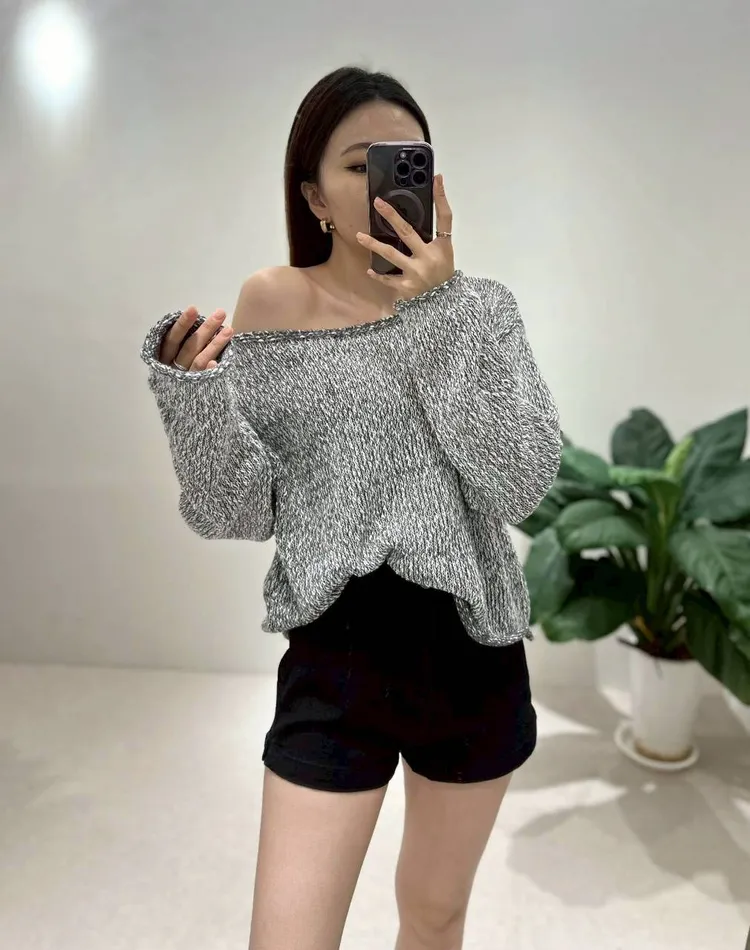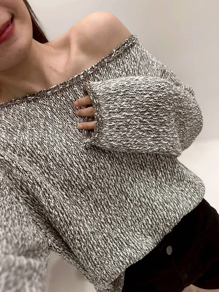 雜色落肩毛衣