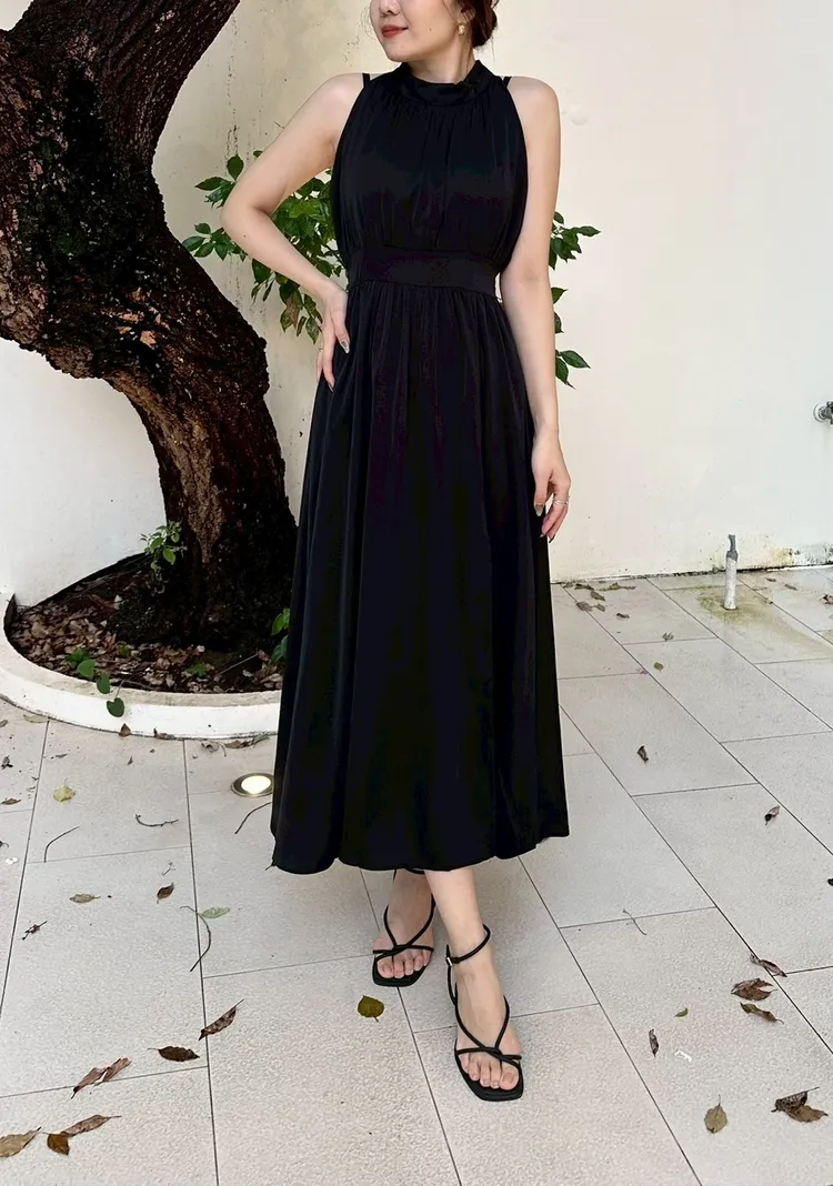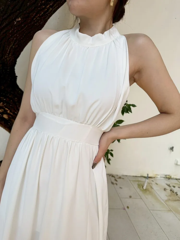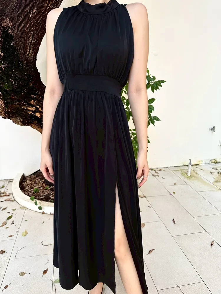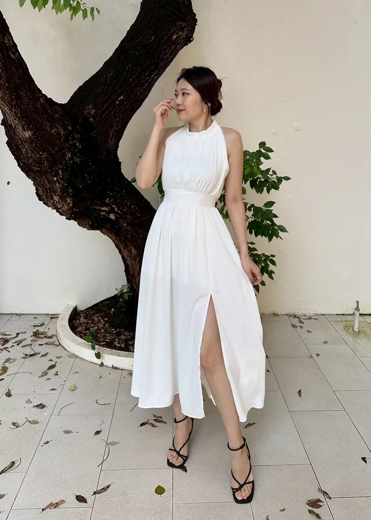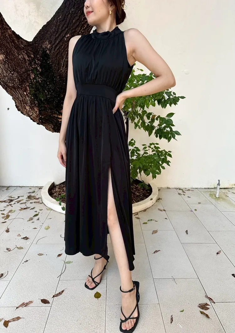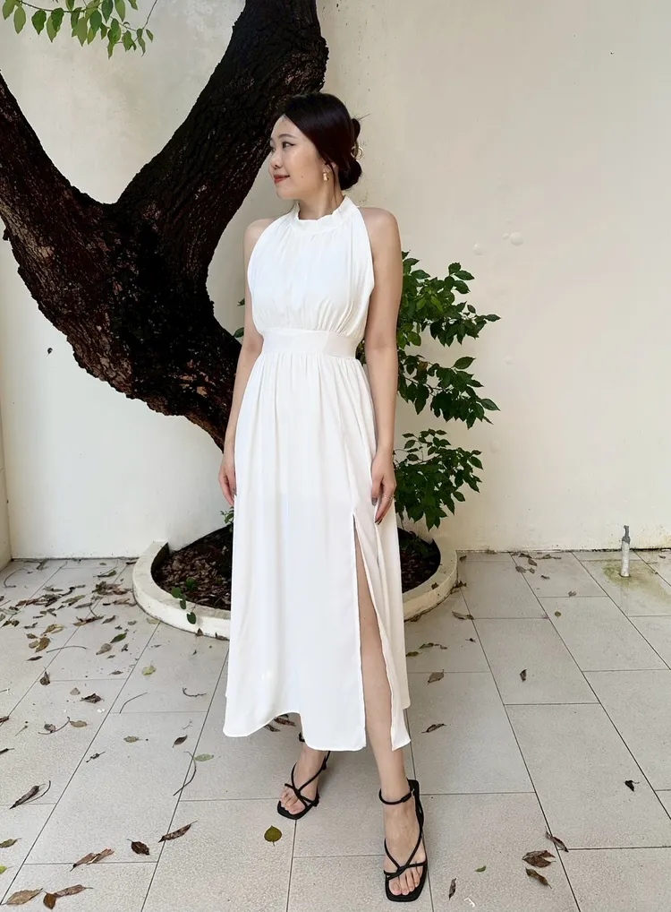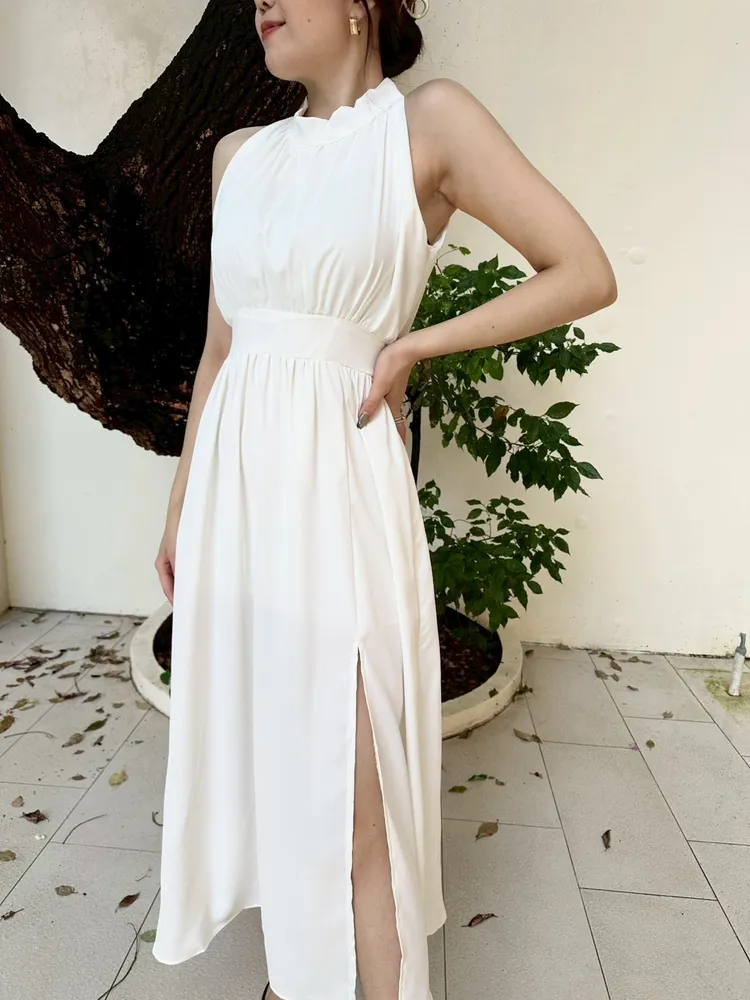 削肩開衩長洋