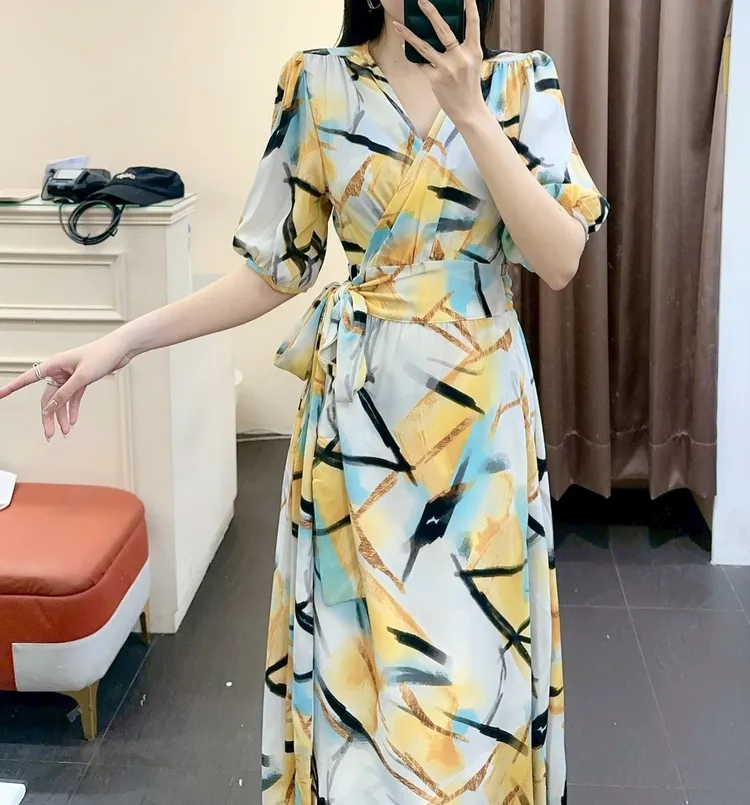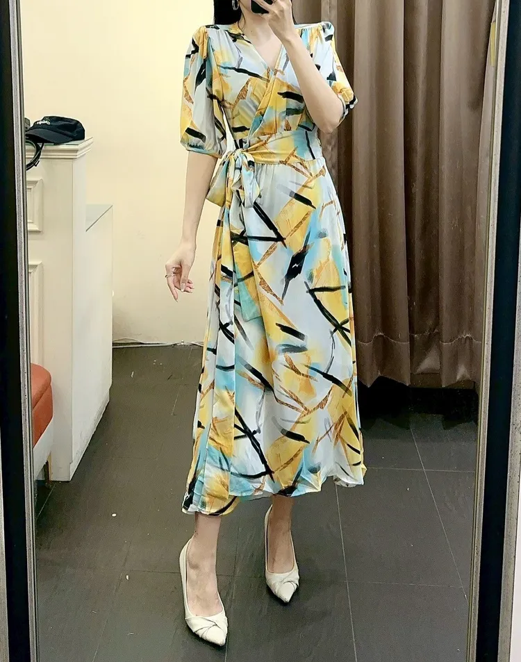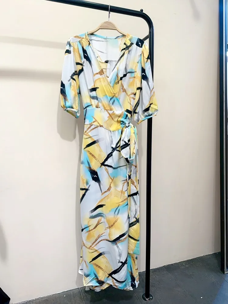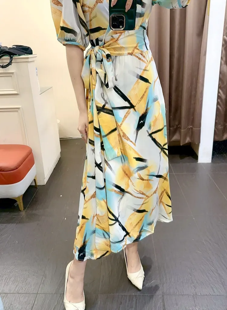 幾何圖綁帶長洋