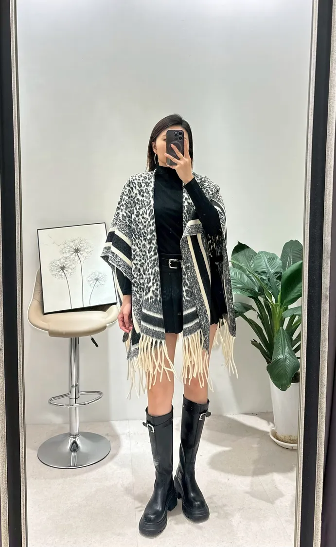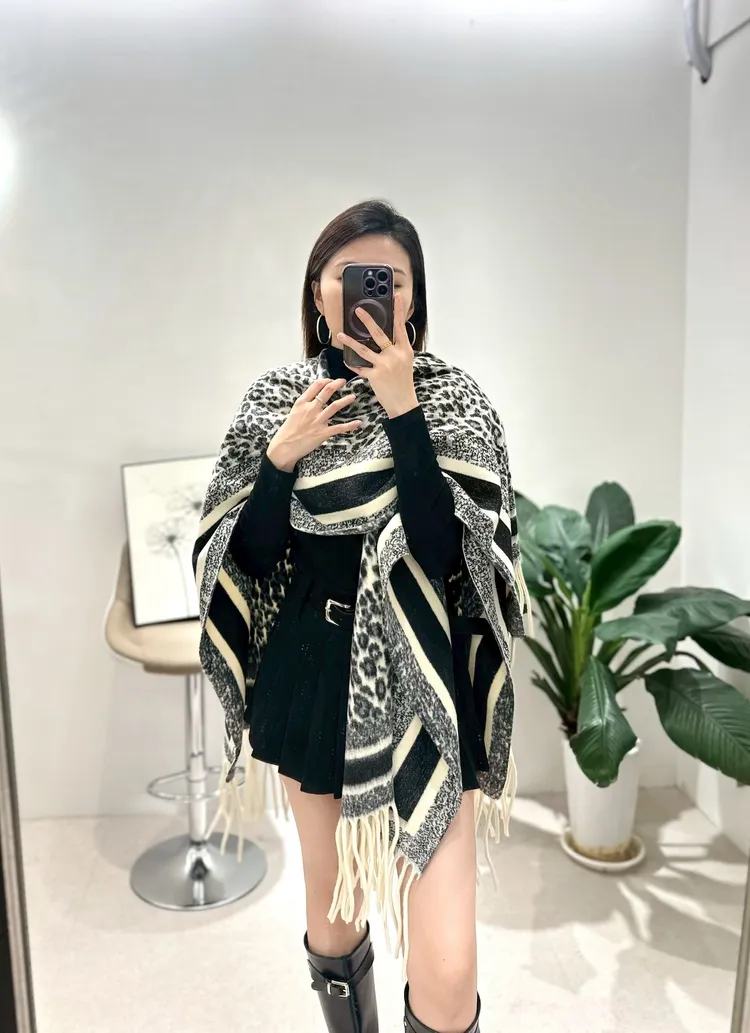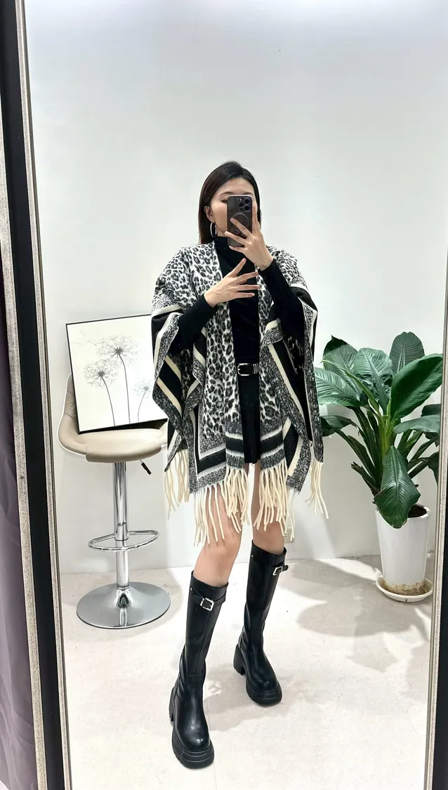 流蘇豹紋披肩